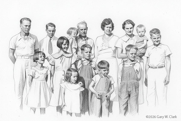 1936 Photograph Prompt: Create pencil sketch of photo, remove dark background. (Gemini 2.5) |