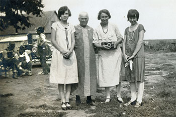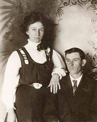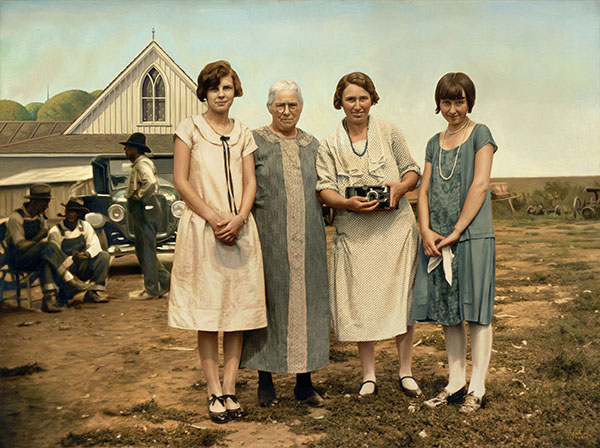 1927 Photograph Prompt: Paint this image in the American Gothic style by Grant Wood, do not change faces. (Gemini 3.0) |