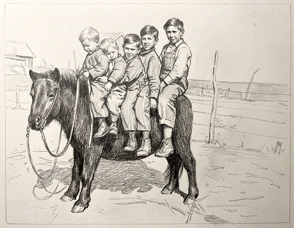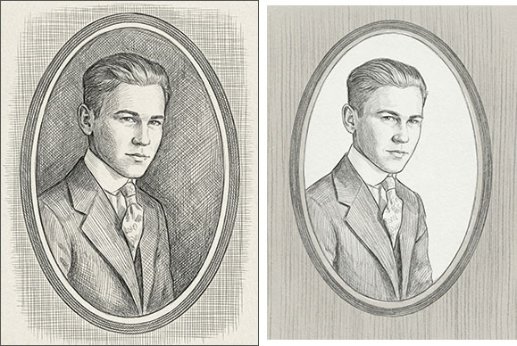 1936 Photograph Prompt: Create pencil sketch of photo, remove dark background. (Gemini 2.5) |
