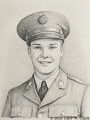 1942 Photograph Prompt: Create stippling sketch of this photo. (Gemini 3.0) Note: This young man signed up for service the day after Pearl Harbor. He served over 20 years in the Air Force. |