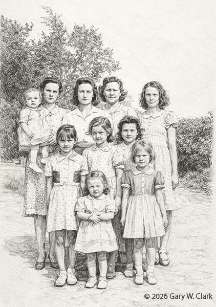 1942 Photograph Prompt: Create pencil sketch of this photo, keep original faces and people, do not substitute. (GPT 1.5) |